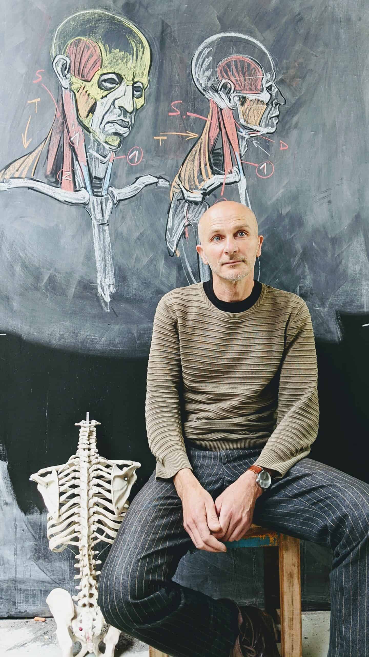 Un tableau noir et des craies : Michel Lauricella n’a pas besoin de plus pour nous impressionner avec ses dessins de corps et d’écorchés. Formé aux Beaux-Arts de Paris, il exerce aujourd’hui en tant que professeur de morphologie, matière technique qu’il arrive pourtant à enseigner avec poésie. Pour comprendre sa passion et à l’occasion de ses prochains cours en ligne au PAON, nous sommes allées lui rendre visite dans son atelier… Rencontre avec Michel, le pro de la morpho.