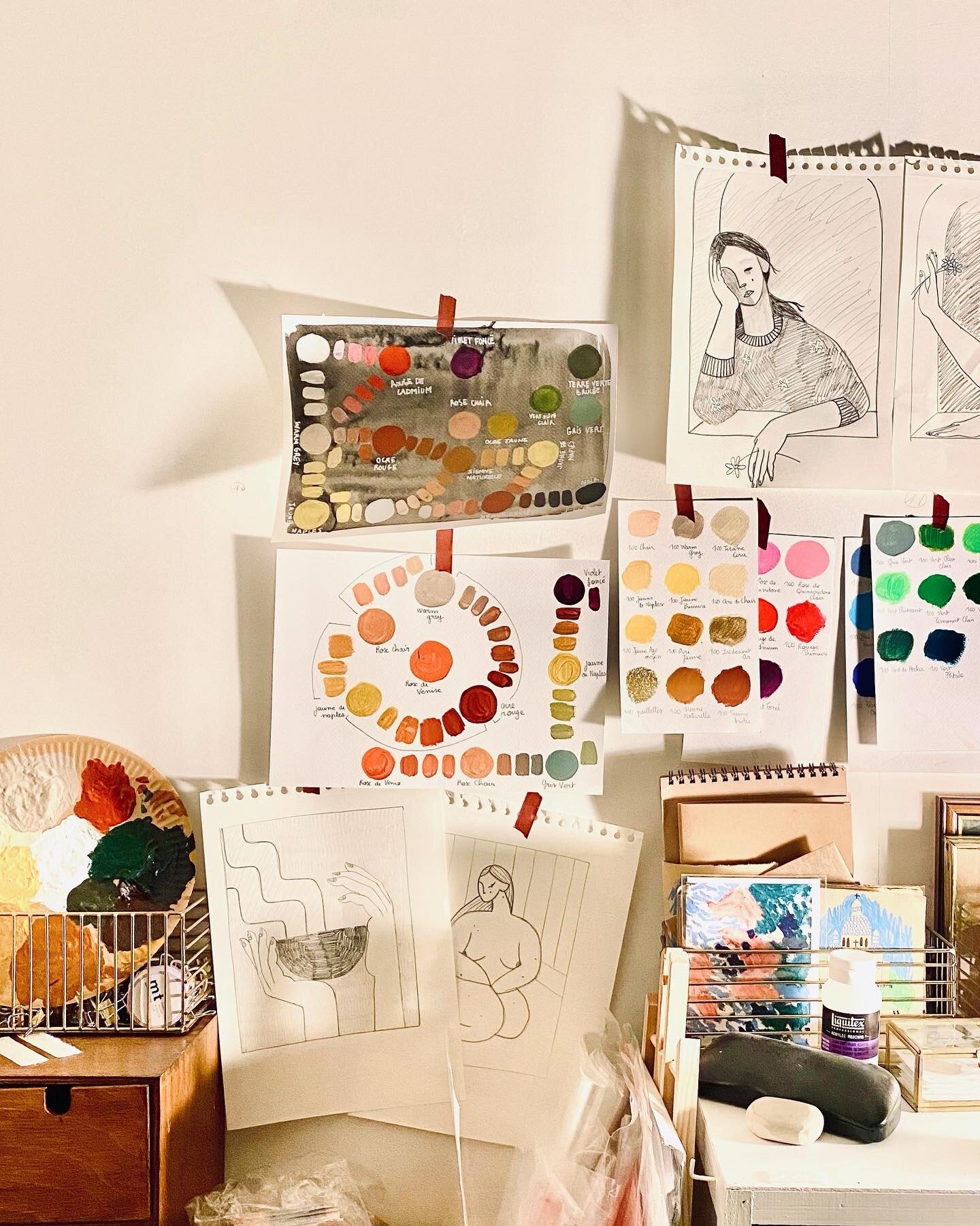 Je dessine depuis toute petite, j’ai fait un bac Arts Appliqués et ensuite, des études d’illustration et de communication visuelle. Je me suis alors lancée comme freelance, puis j’ai travaillé sous contrat en tant que graphiste et directrice artistique. Depuis 2020, je me consacre à 100 % à ma pratique artistique !
