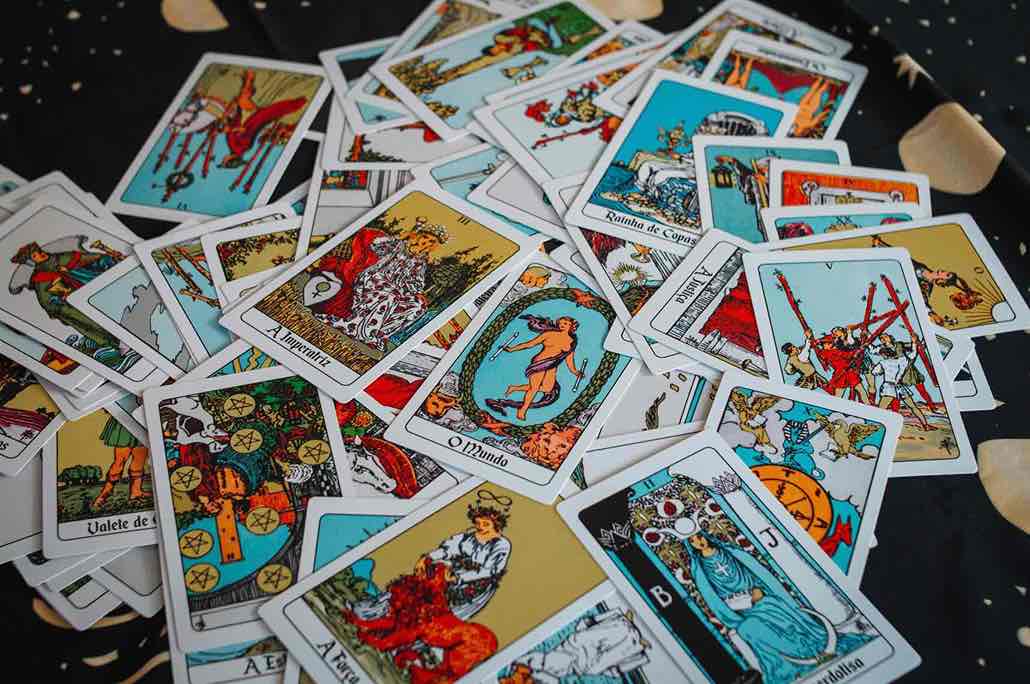 Jeu de cartes de tarot éparpillé