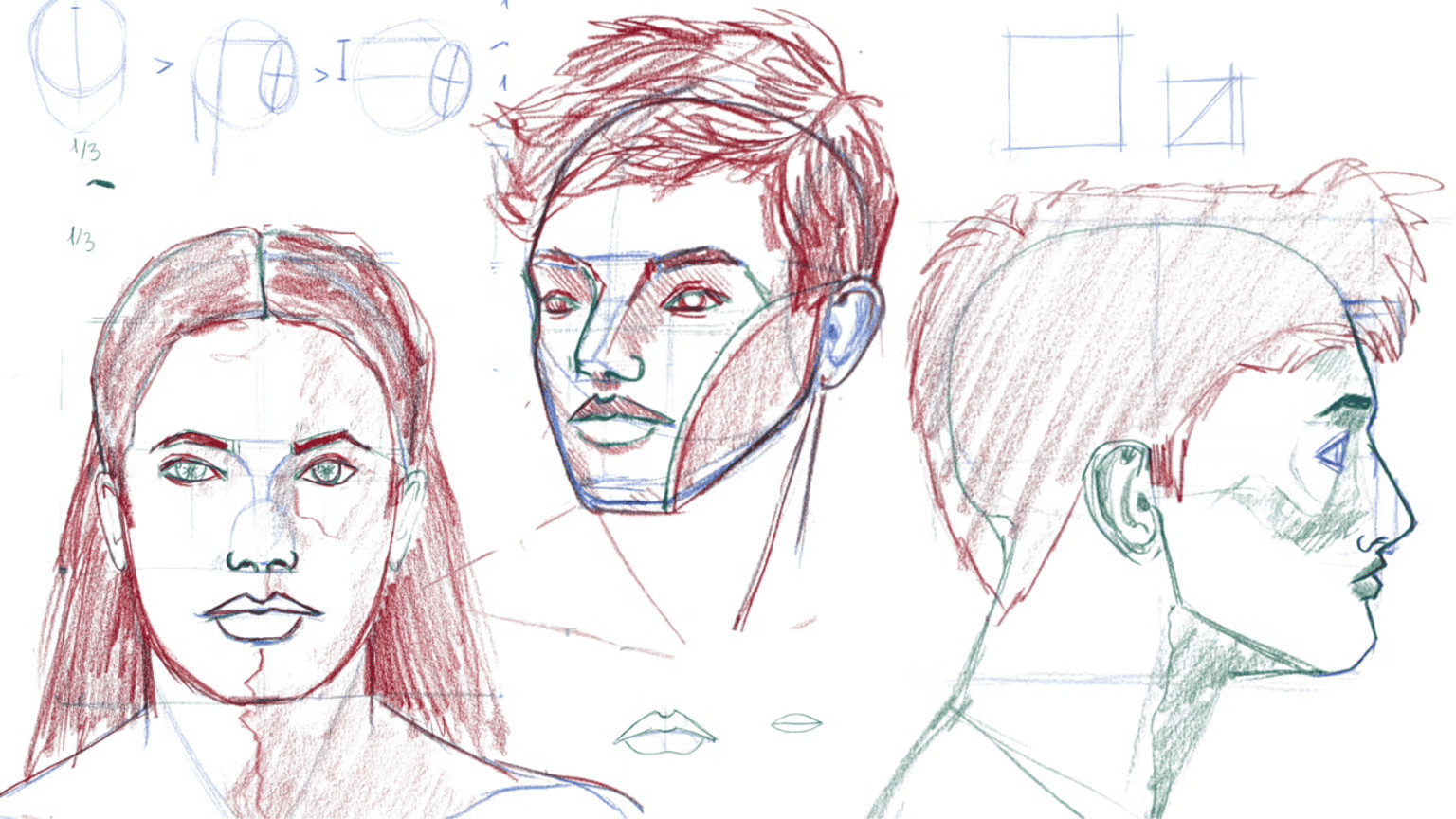 👉 Le cours “Portrait de profil” permet de comprendre les proportions réelles du visage — souvent très différentes de ce qu’on imagine.
