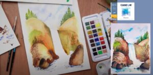 Bravo, vous avez terminé de dessiner une cascade ! Vous pouvez retrouver l’atelier animé par Dominique Pascaud en cliquant gratuitement sur ce lien et nous partager vos plus belles réalisations sur le groupe Facebook Les ateliers en ligne de Canson.