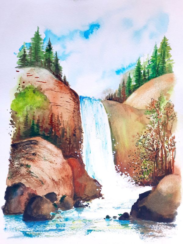Peindre une cascade à l'aquarelle
